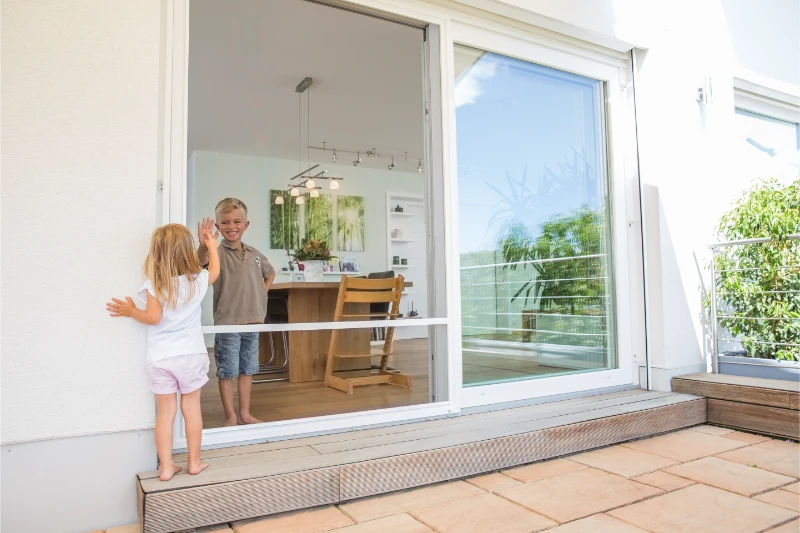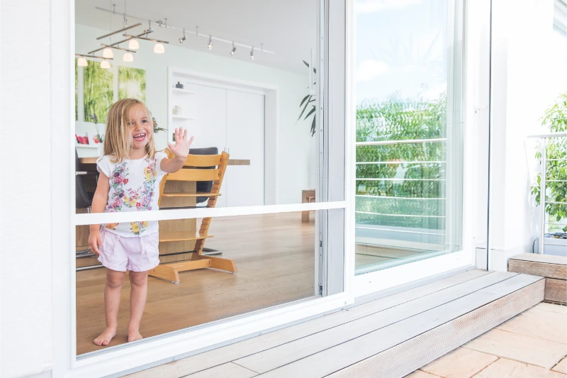 Bedienbarkeit: Auch Kinder können Schiebetüren problemlos bedienen. Bei Transpatec-Gewebe ist etwas mehr Vorsicht geboten (empfindlicher).