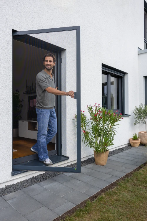 Ein hochwertiger Insektenschutz für Türen muss daher besondere Anforderungen erfüllen: Er muss bequem bedienbar sein, auch bei vollem Händen funktionieren, intensiver Nutzung standhalten und gleichzeitig zuverlässig Insekten draußen halten.